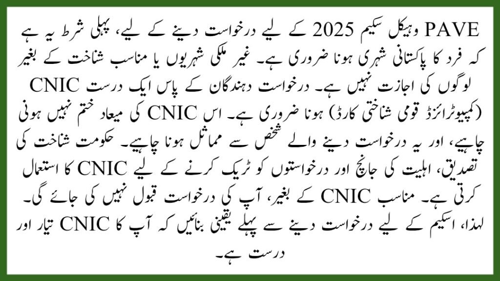 Nationality and CNIC Requirements for PAVE Vehicle Scheme 2025