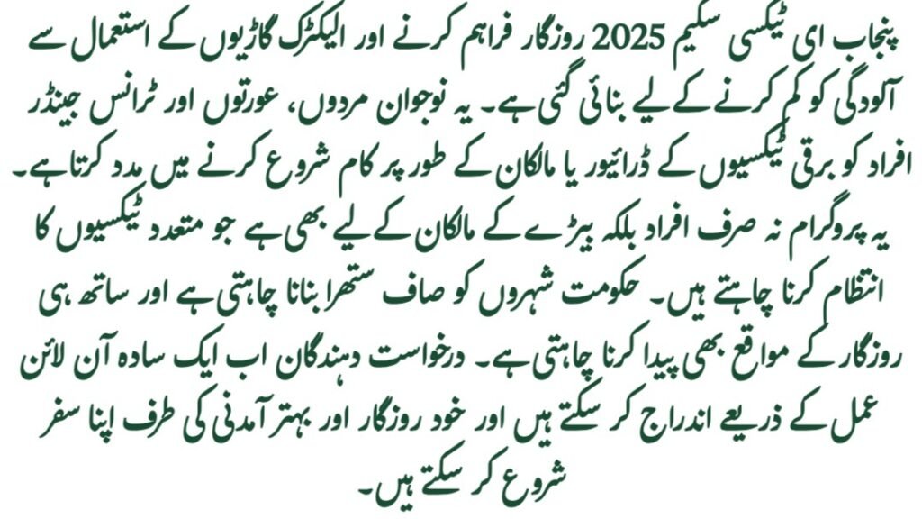 Punjab E-Taxi Scheme 2025 – What This Program Offers